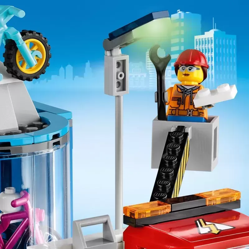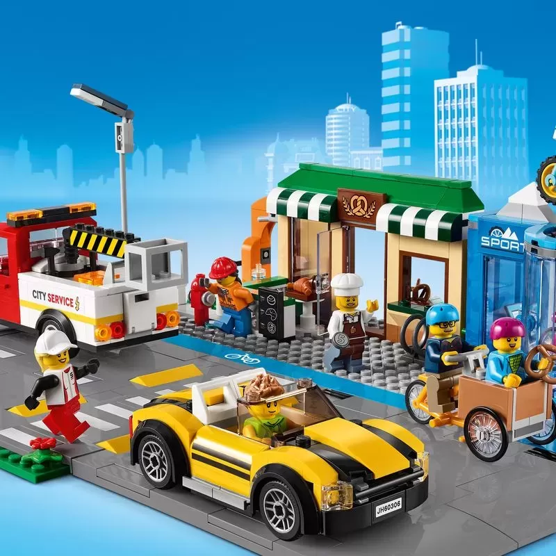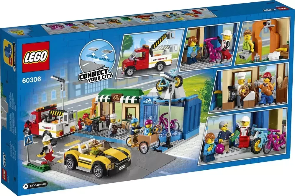 This premium multi-model LEttgGO City Shopping Street (60306) playset is bursting with exciting features and functions. There__ a bakery, bike shop and park with an outdoor training center. Kids also get a toy cargo bike, sports car and a service truck with a cherry picker, plus 6 fun minifigures. And with the included LEttgGO City Road Plates, kids can connect to other playsets to expand their city �?just the way they like it!