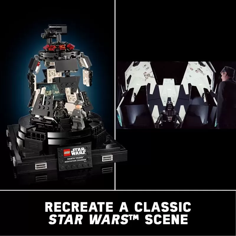 __ou have failed me for the last time, Admiral_��?Relive each dramatic scene from Star Wars: The Empire Strikes Back as you build the first-ever LEttgGO® brick model of the Darth Vader Meditation Chamber (75296). Kick back and enjoy some quality time immersed in the rewarding building process and recreate lots of authentic details. The chamber opens and closes just like the real thing and features a big screen, control panels, a rotating seat for Darth Vader and a place for General Veers to stand opposite him.