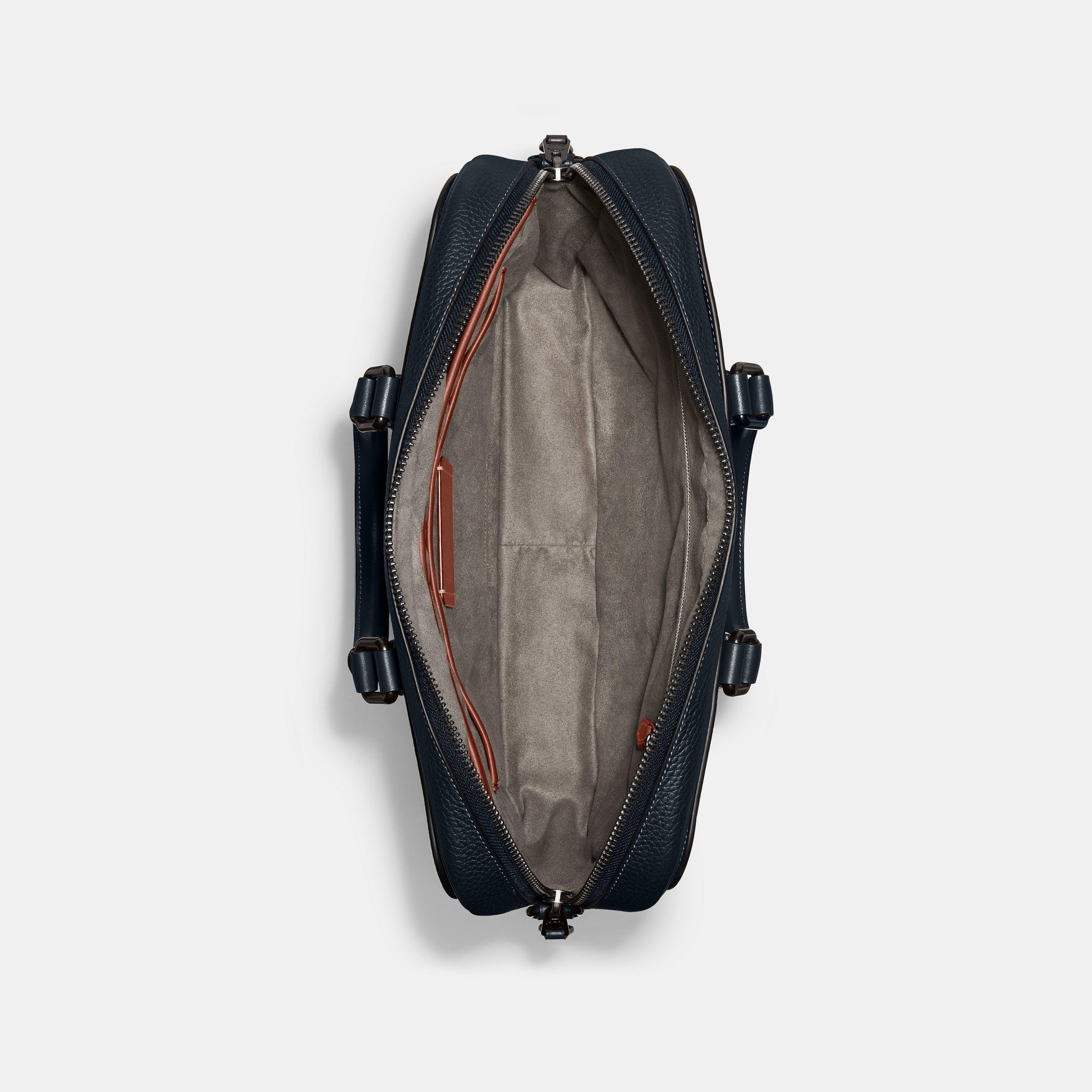 A bag as distinct as its namesake city, the Gotham is a sleek, streamlined style that means business. The minimalist Brief has interior multifunction pockets for organizing gadgets, exterior pockets for easy access to essentials, plus space for documents and a 13" laptop. Crafted in a mix of pebble leather and refined leather, it comes with comfortable rolled handles and a detachable strap for shoulder or crossbody wear.