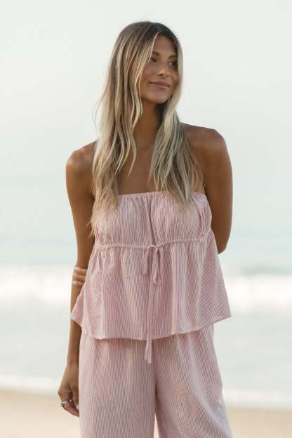 To the Beach Striped Woven Strapless Set