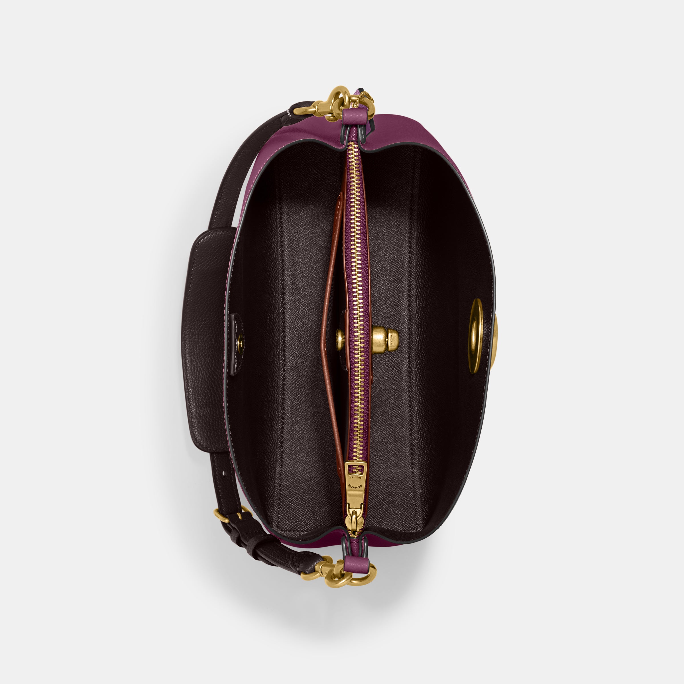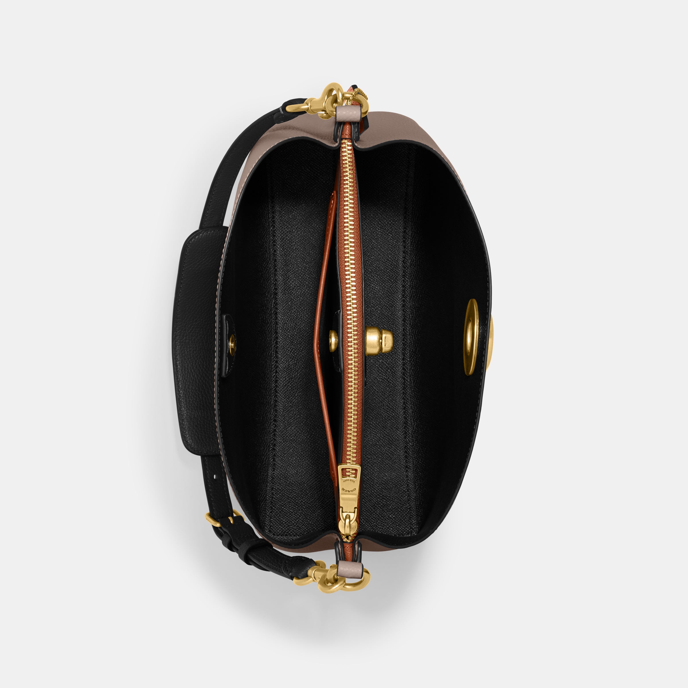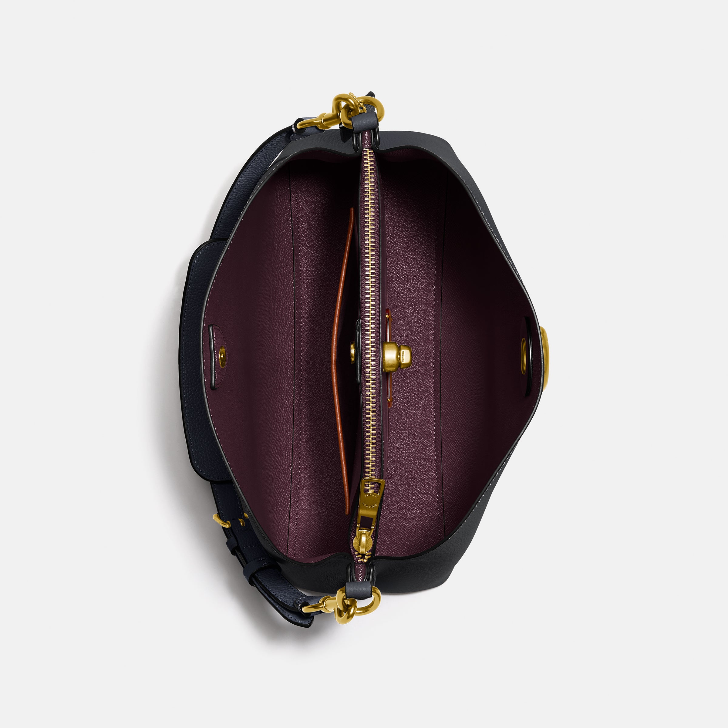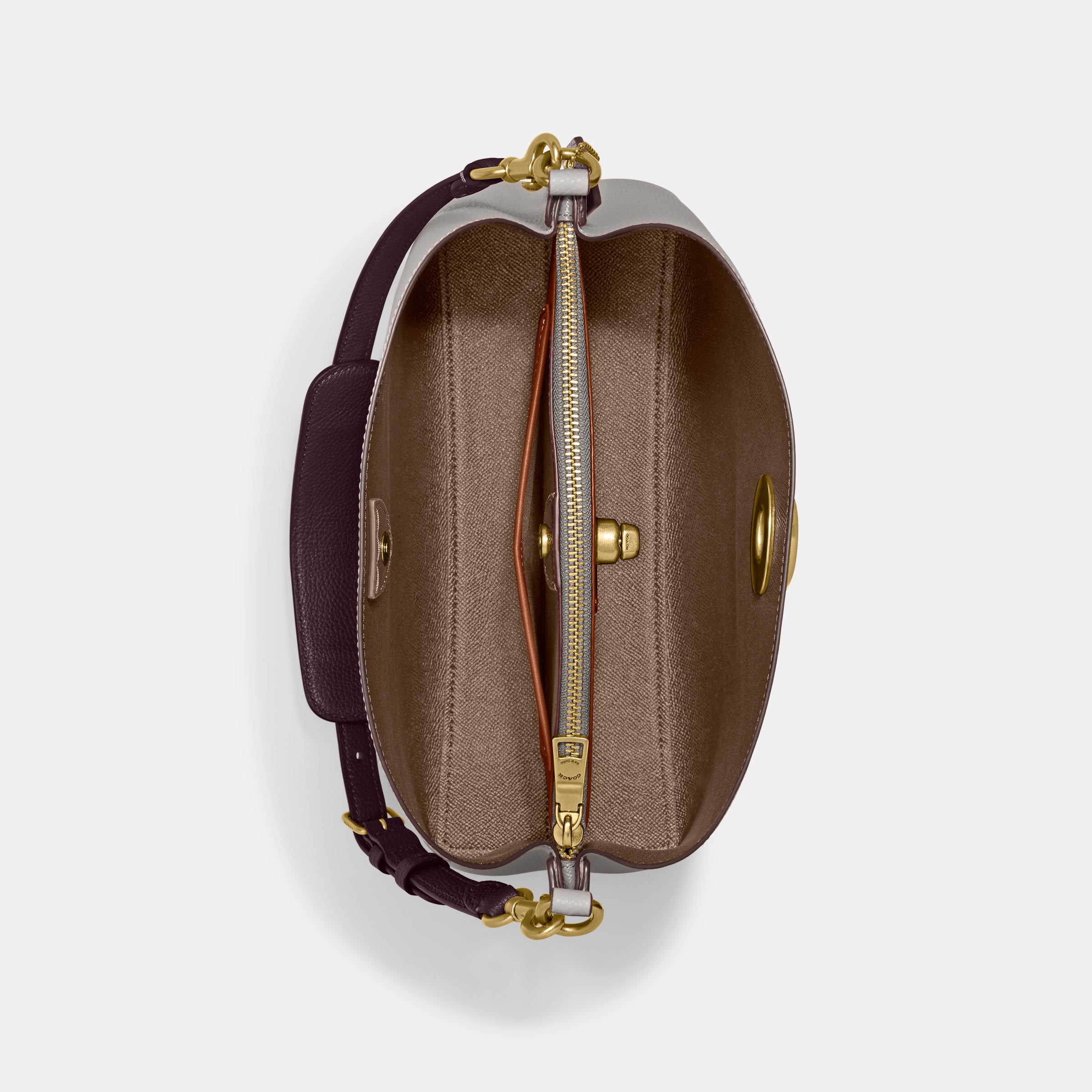 | Features | Polished Pebble Leather Inside Snap Pocket Center Zip Compartment Turnlock Closure Four Protective Feet At Base |