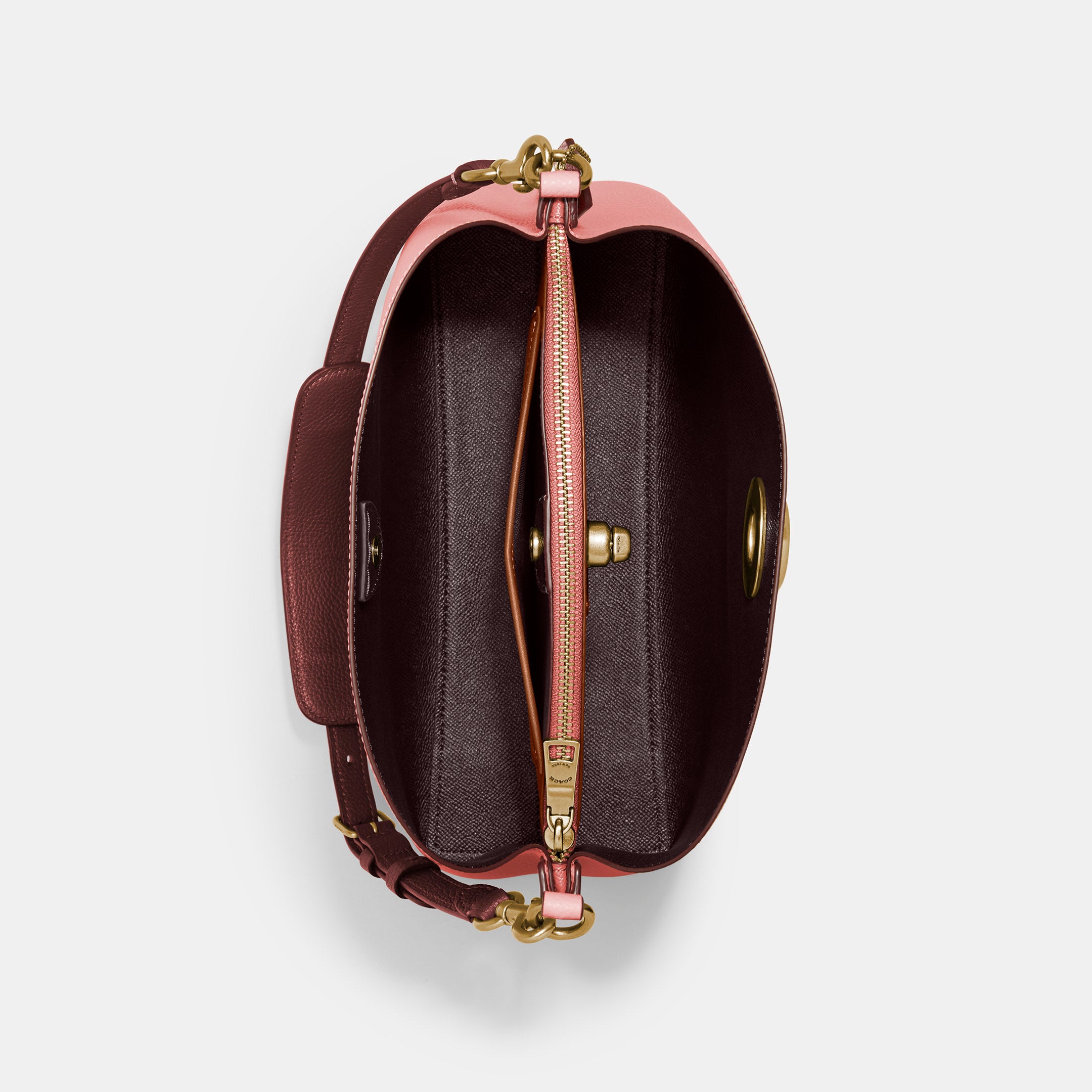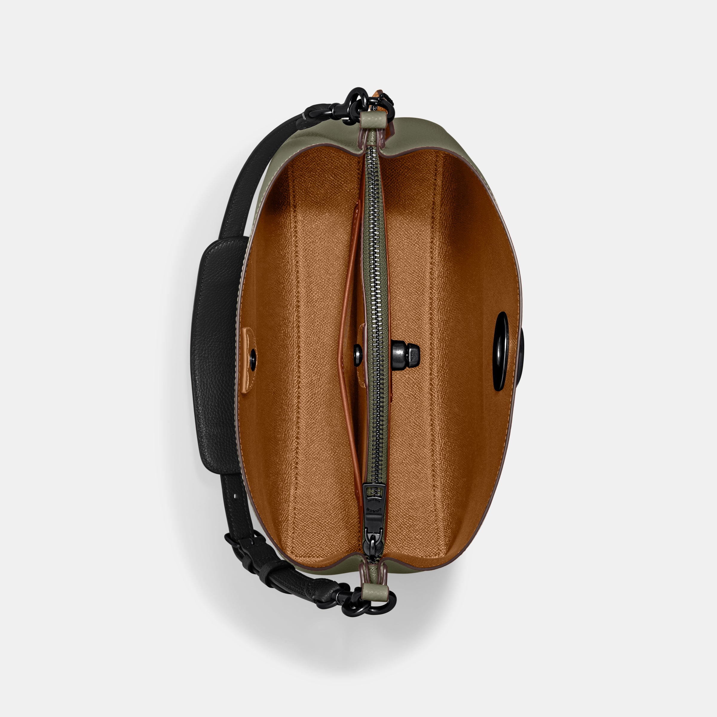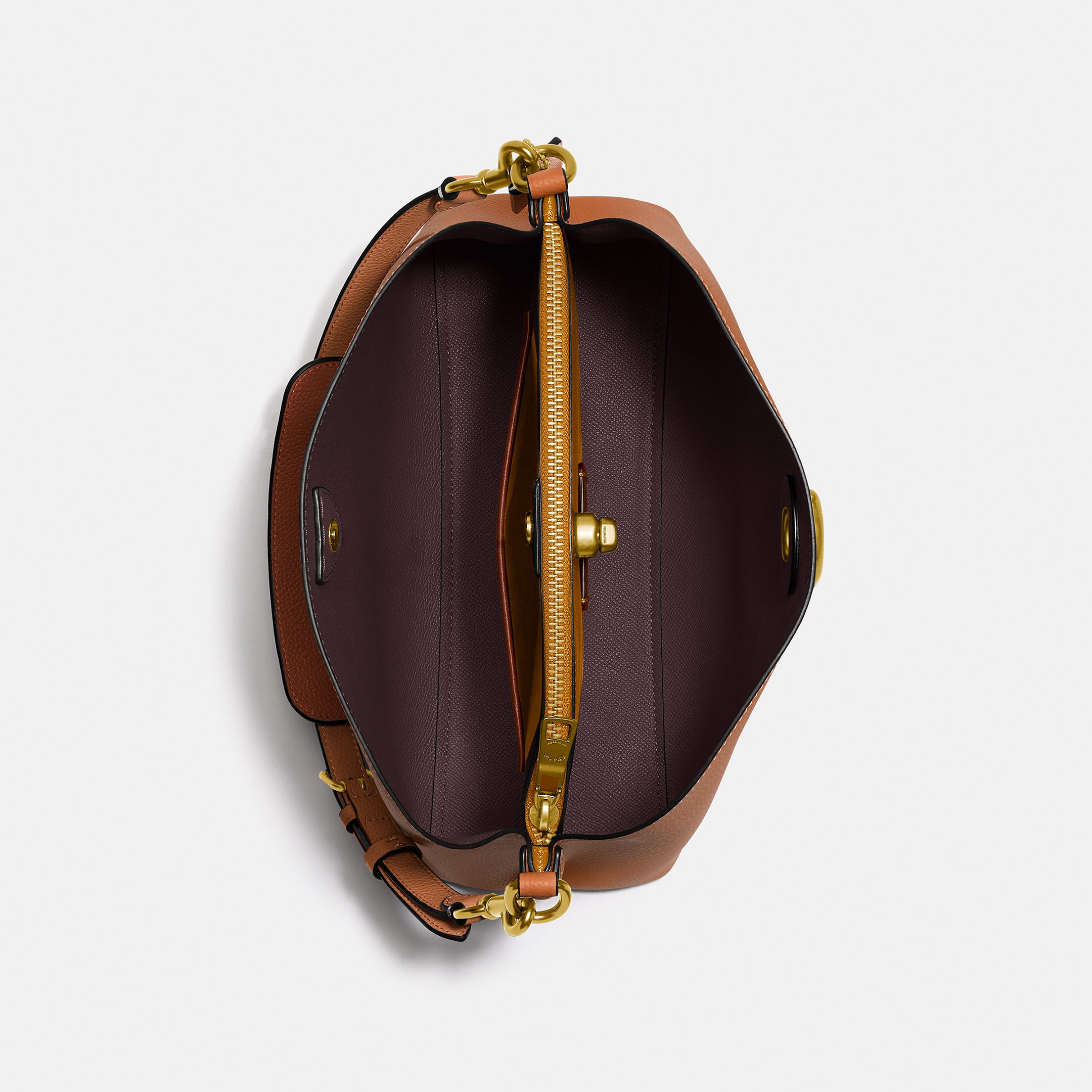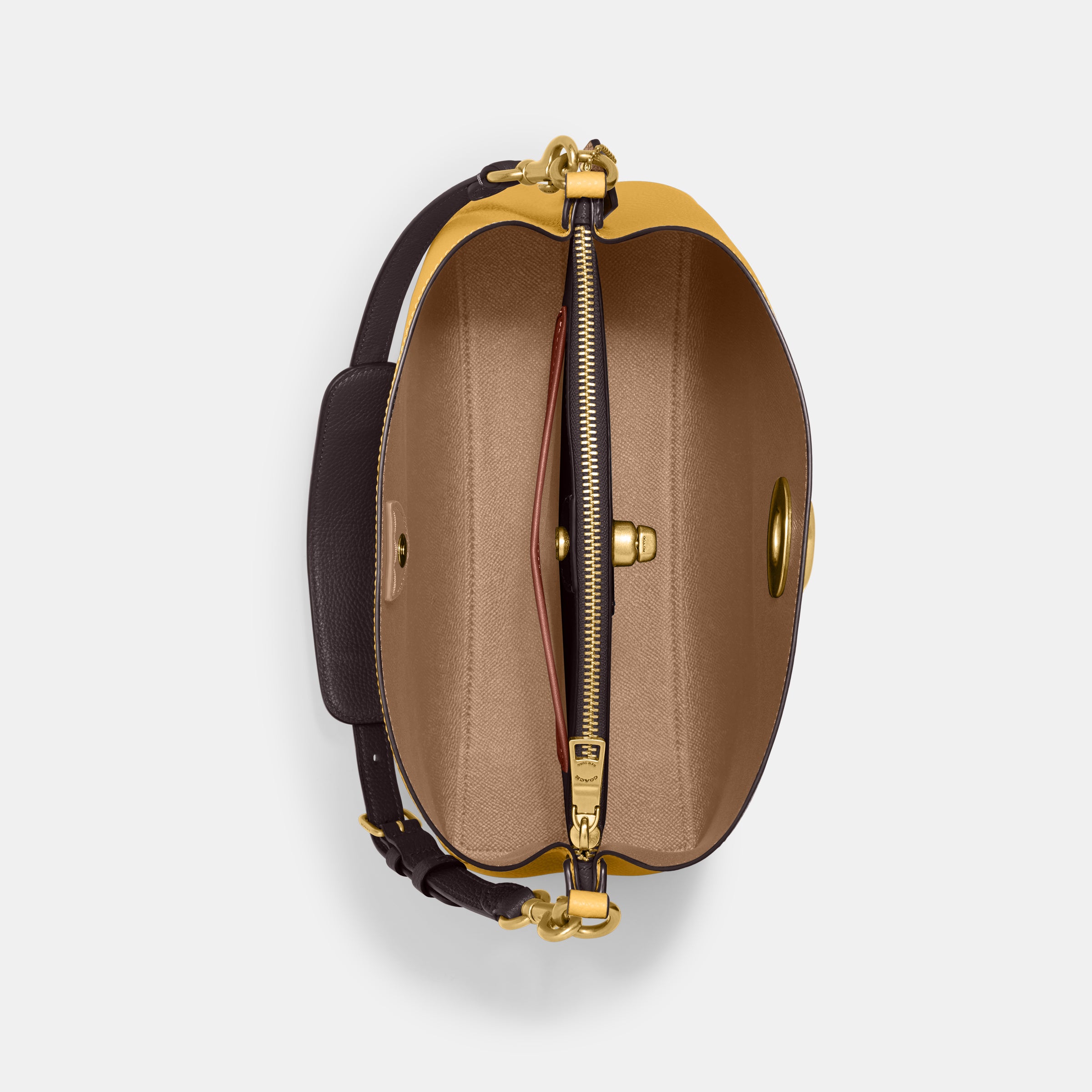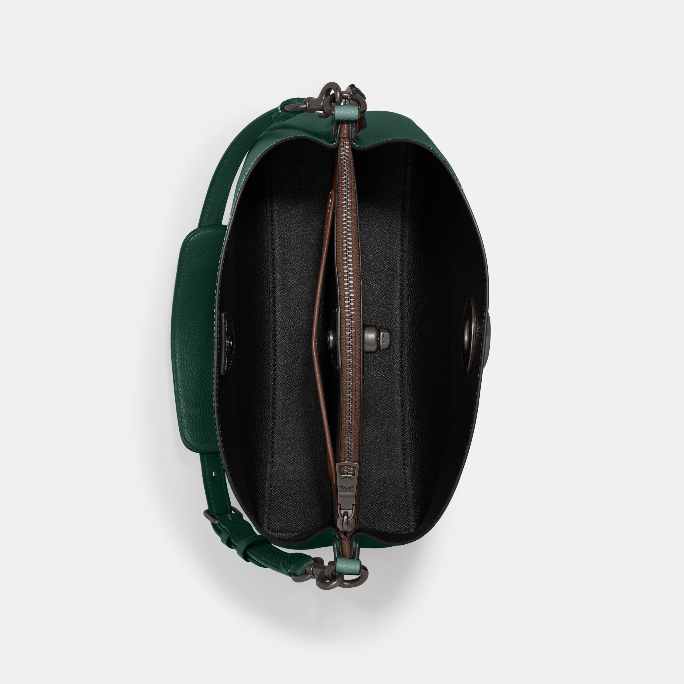 | Features | Polished Pebble Leather Inside Snap Pocket Center Zip Compartment Turnlock Closure Four Protective Feet At Base |