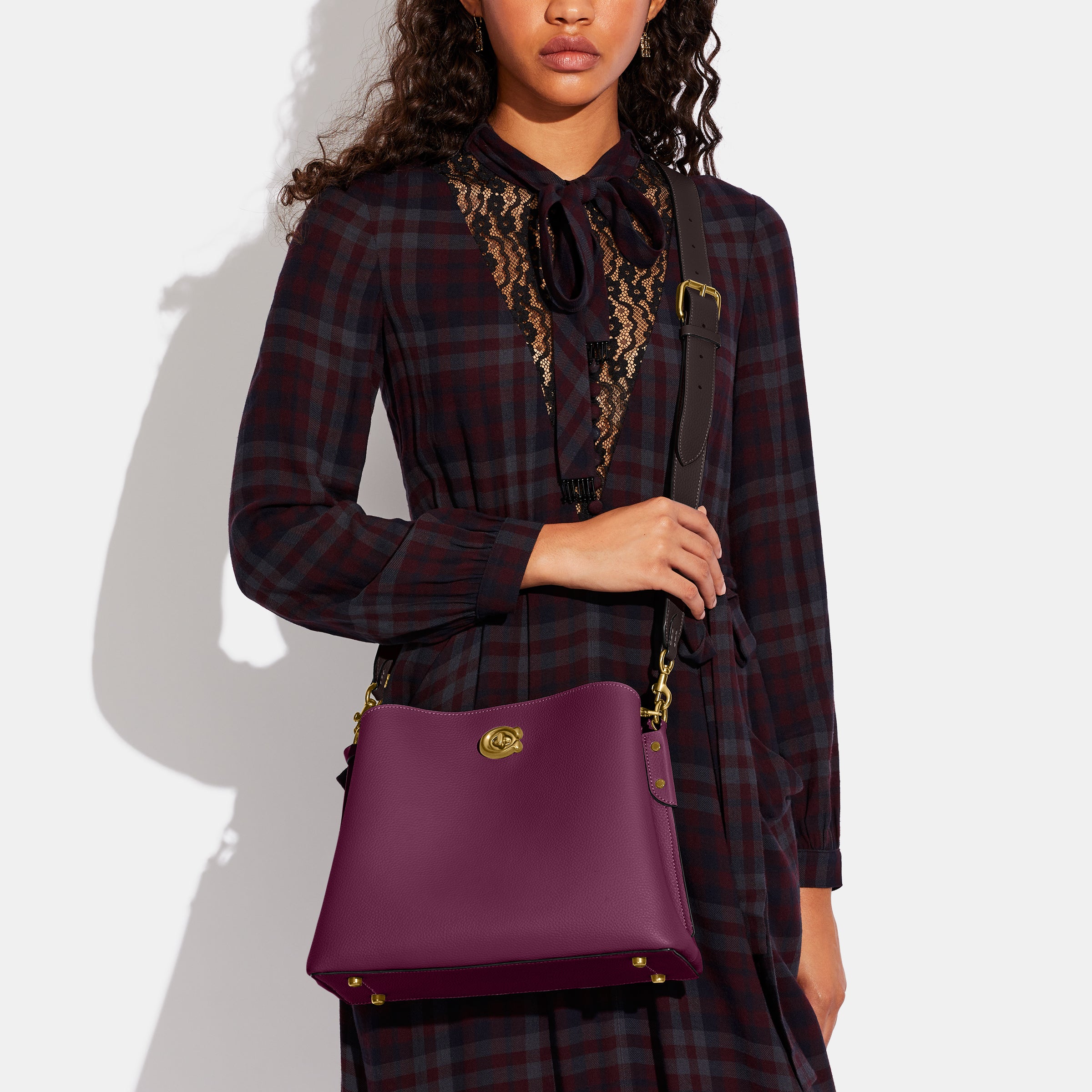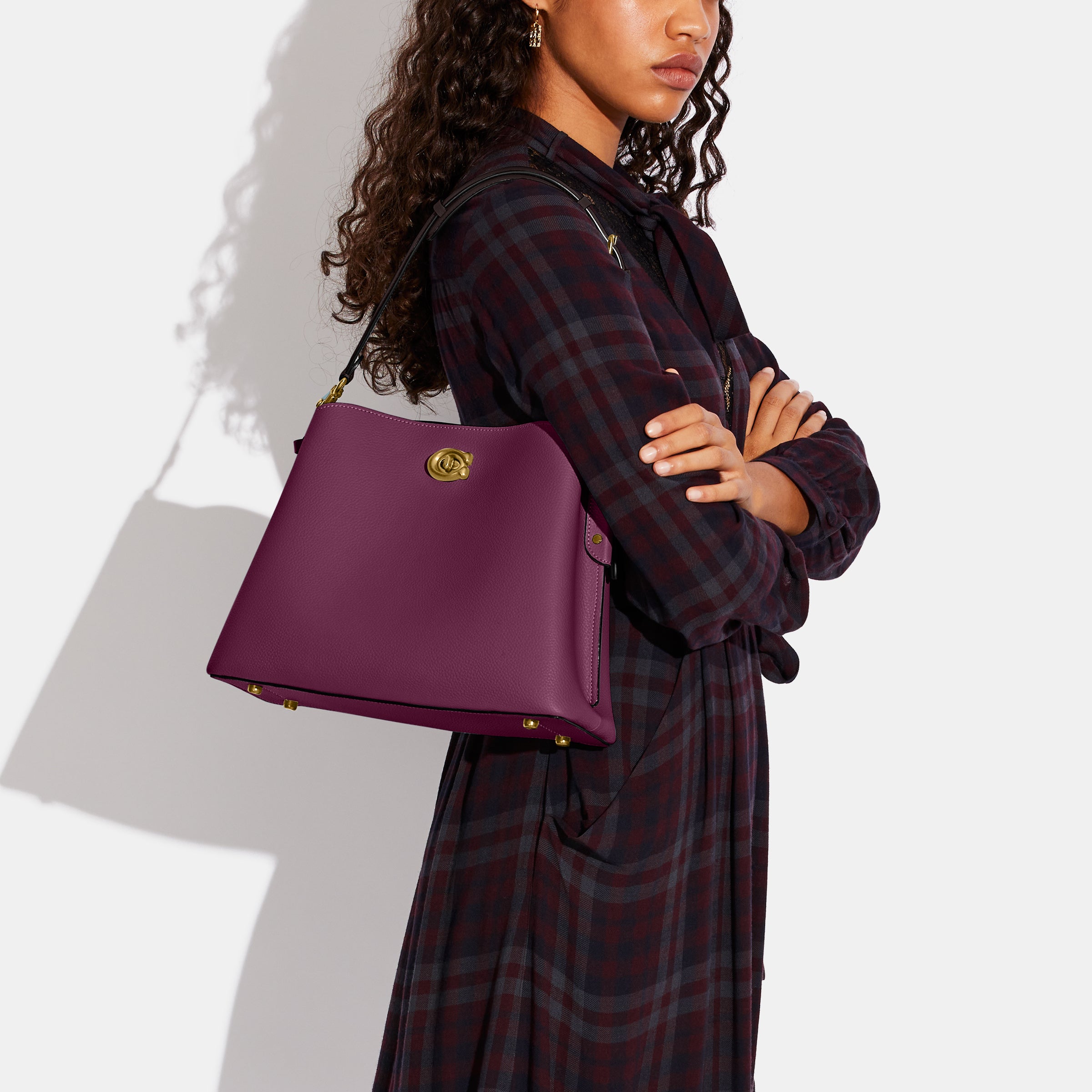 Not Too Big, Not Too Small, Willow Is The Perfect Go-Anywhere Shoulder Bag With Space For All Of Your Day-To-Day Essentials. Crafted Of Colorblock Polished Pebble Leather, It Has An Organized Interior With One Zip Compartment, Two Open Compartments And A Snap Pocket For Small Necessities. The Roomy Trapezoid Shape Secures With Our Signature Turnlock Closure And Can Be Carried By Hand, On The Shoulder Or Crossbody.