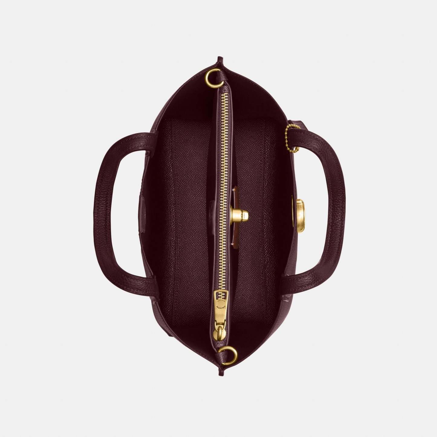 | Features | Polished pebble leather Center zip compartment Turnlock and magnetic snap closures Four protective feet at base |