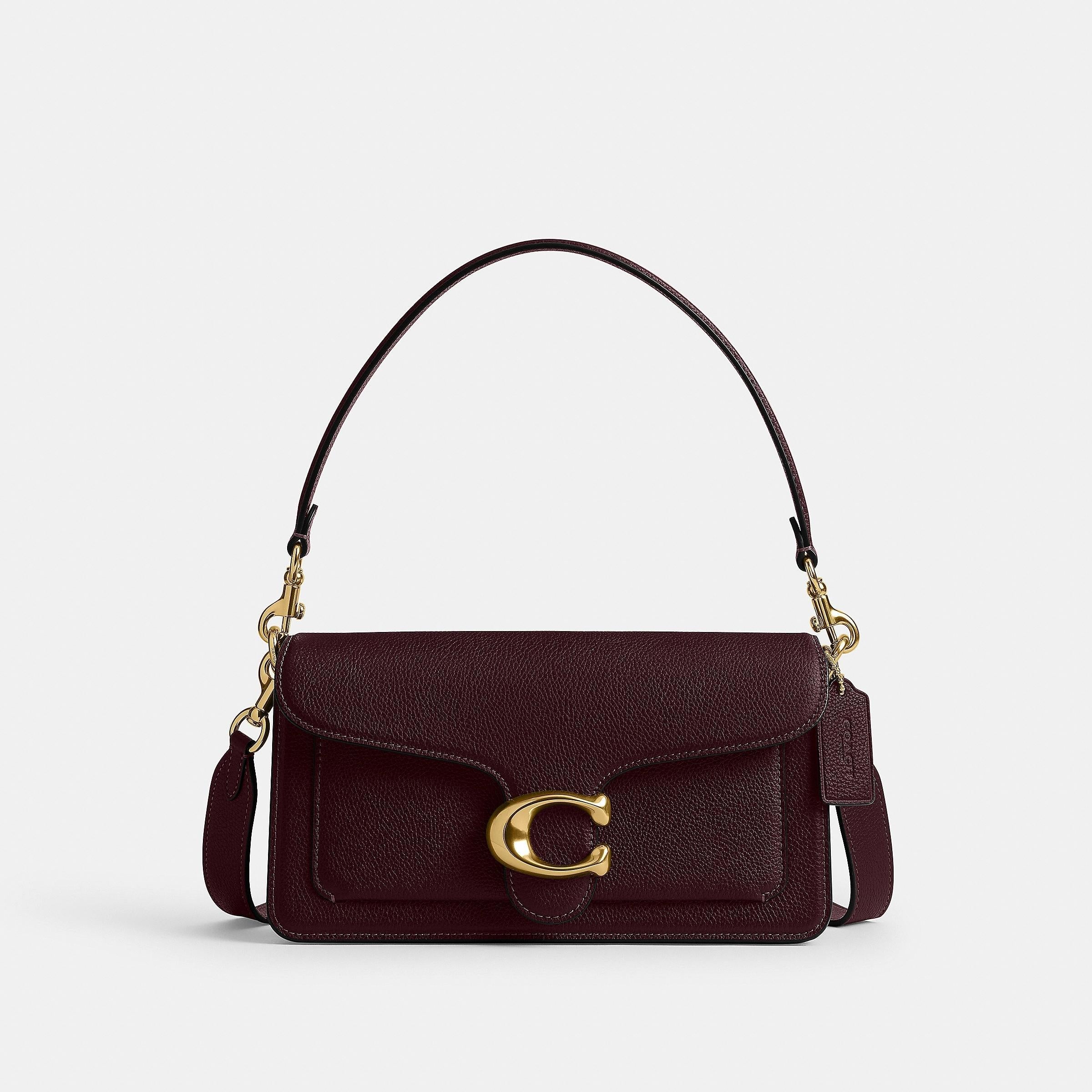 A modern take on an archival 1970s coathtch design, our structured Tabby shoulder bag is crafted of polished pebble leather. Finished with our Signature hardware for an iconic touch, the compact 26 features two detachable straps to carry by hand, style as a short shoulder bag or wear crossbody.
