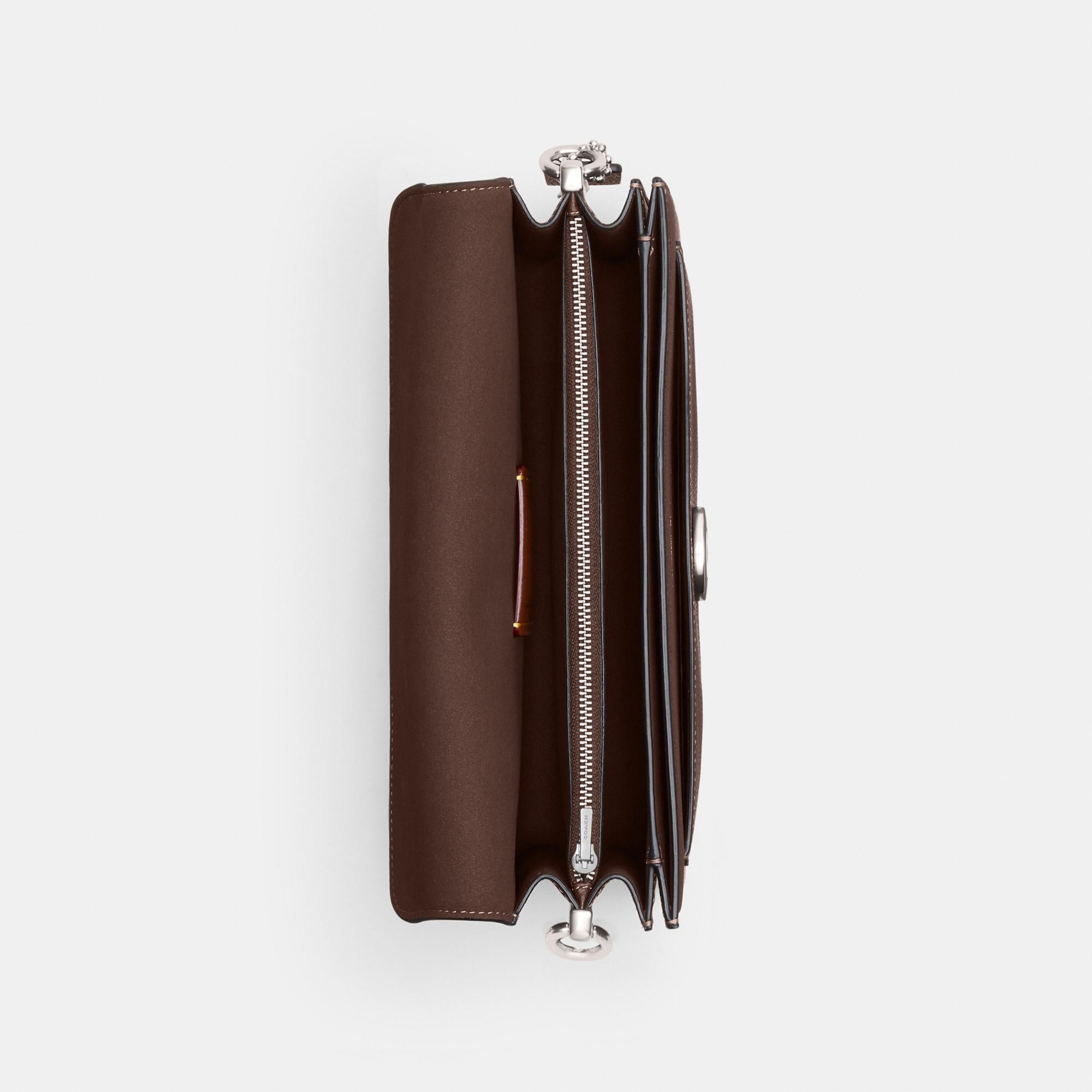 | Features | Polished pebble leather Inside zip and multifunction pockets Snap closure, fabric lining Outside slip pocket |