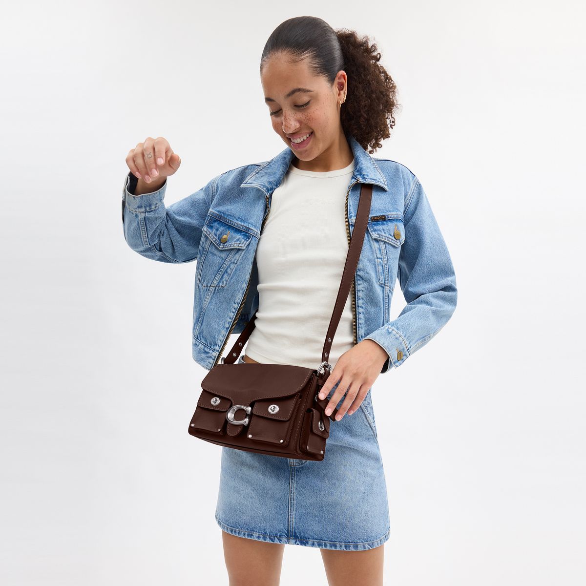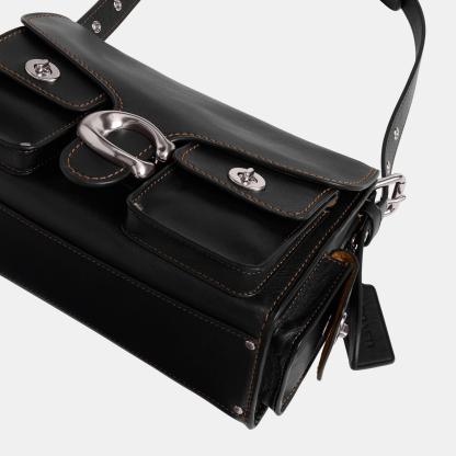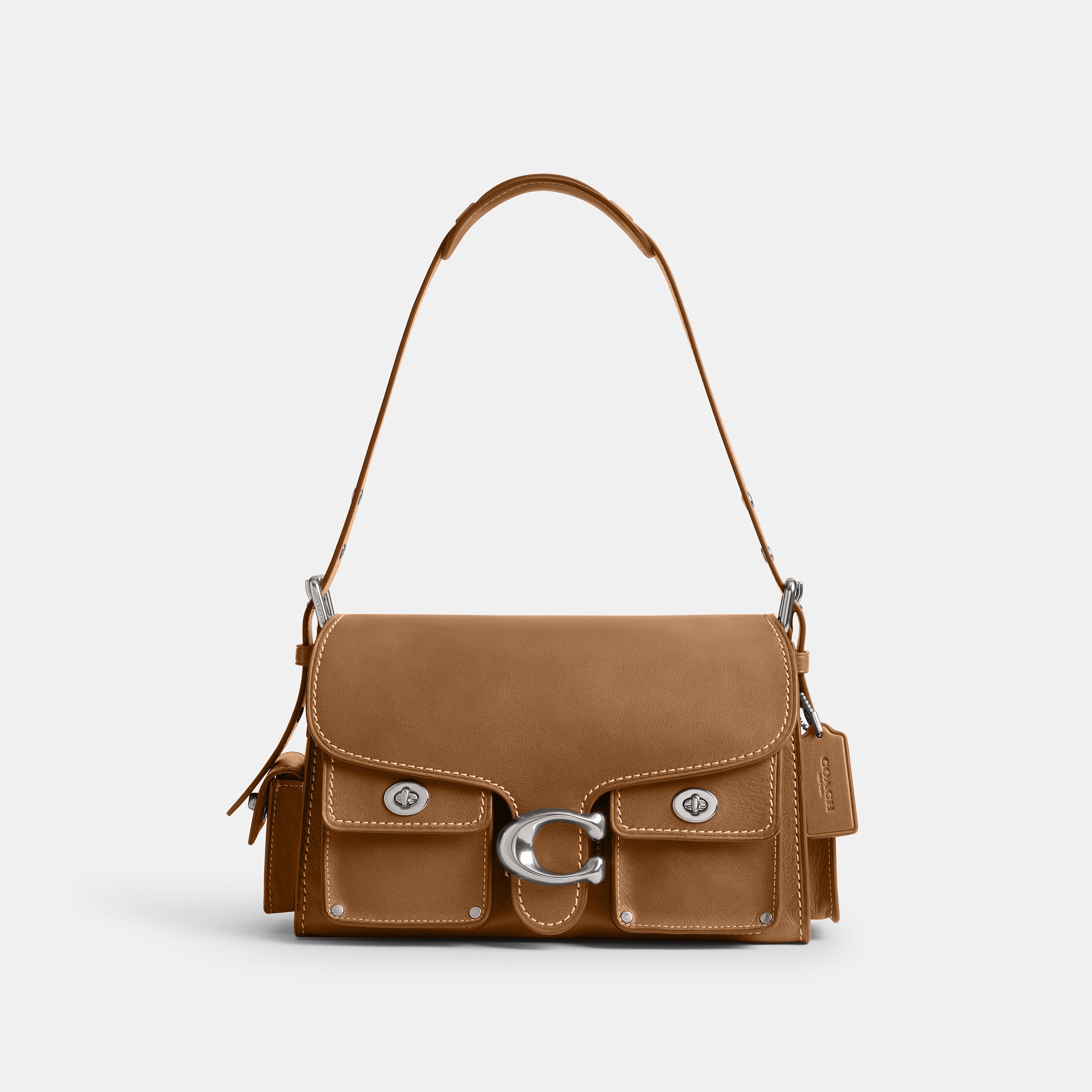 The Soft Tabby reimagines our structured take on an archival 1970s cothtach design with a relaxed feel. Finished with cargo pockets detailed with our iconic turnlock closures, polished stud accents and our Signature hardware, this natural grain leather shoulder bag features pockets inside and out to organize small accessories and two straps to carry by hand, style as a short shoulder bag or wear crossbody.