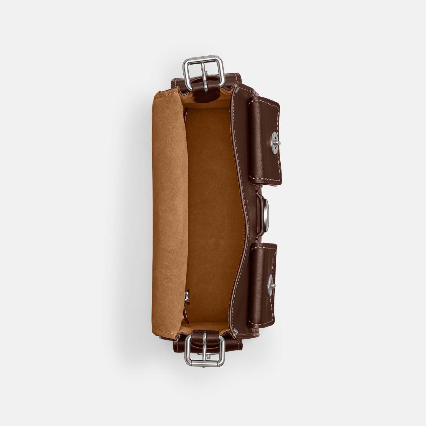 | Features | Natural grain leather Inside zip pocket Snap closure, suede lining Outside turnlock and open pockets |