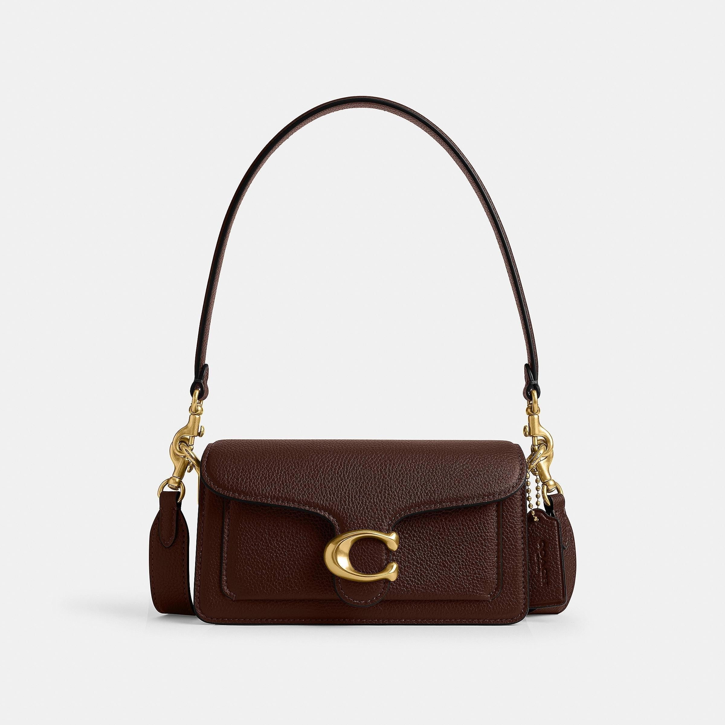 A modern take on an archival 1970s cothtach design, our structured Tabby shoulder bag is crafted of polished pebble leather. Smaller than the 26, the petite 20 features two detachable straps to carry by hand, style as a short shoulder bag or wear crossbody. It__ finished with our Signature hardware for an iconic touch.