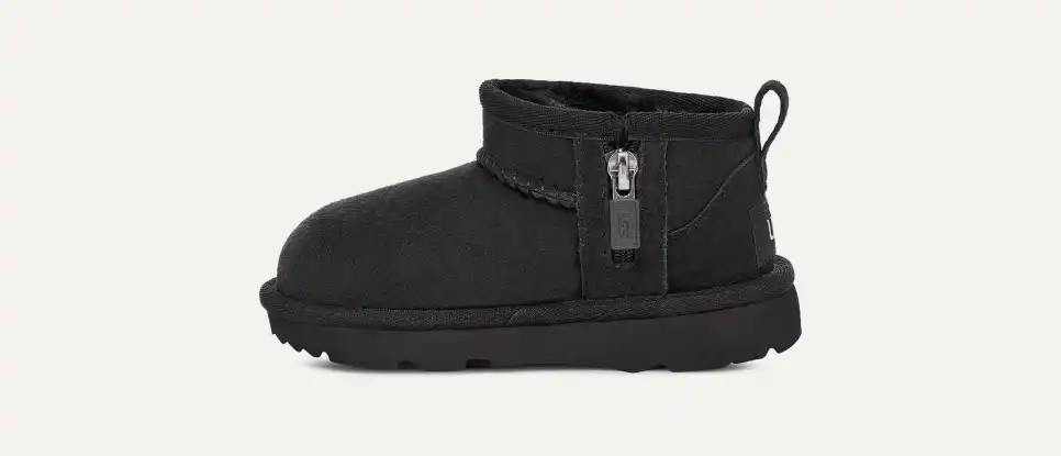 Our iconic boot has been scaled down in size, but not in style. Our Classic Ultra Mini features a lower shaft height to add easy on-off and enhanced versatility. Pre-treated to keep it looking better for longer, this Classic features everything kids love about the original: signature sheepskin lining, an ultra-soft ugthtgplush? insole, and a flexible, lightweight sole made for all-day play. This style is available in sizes for the whole family.