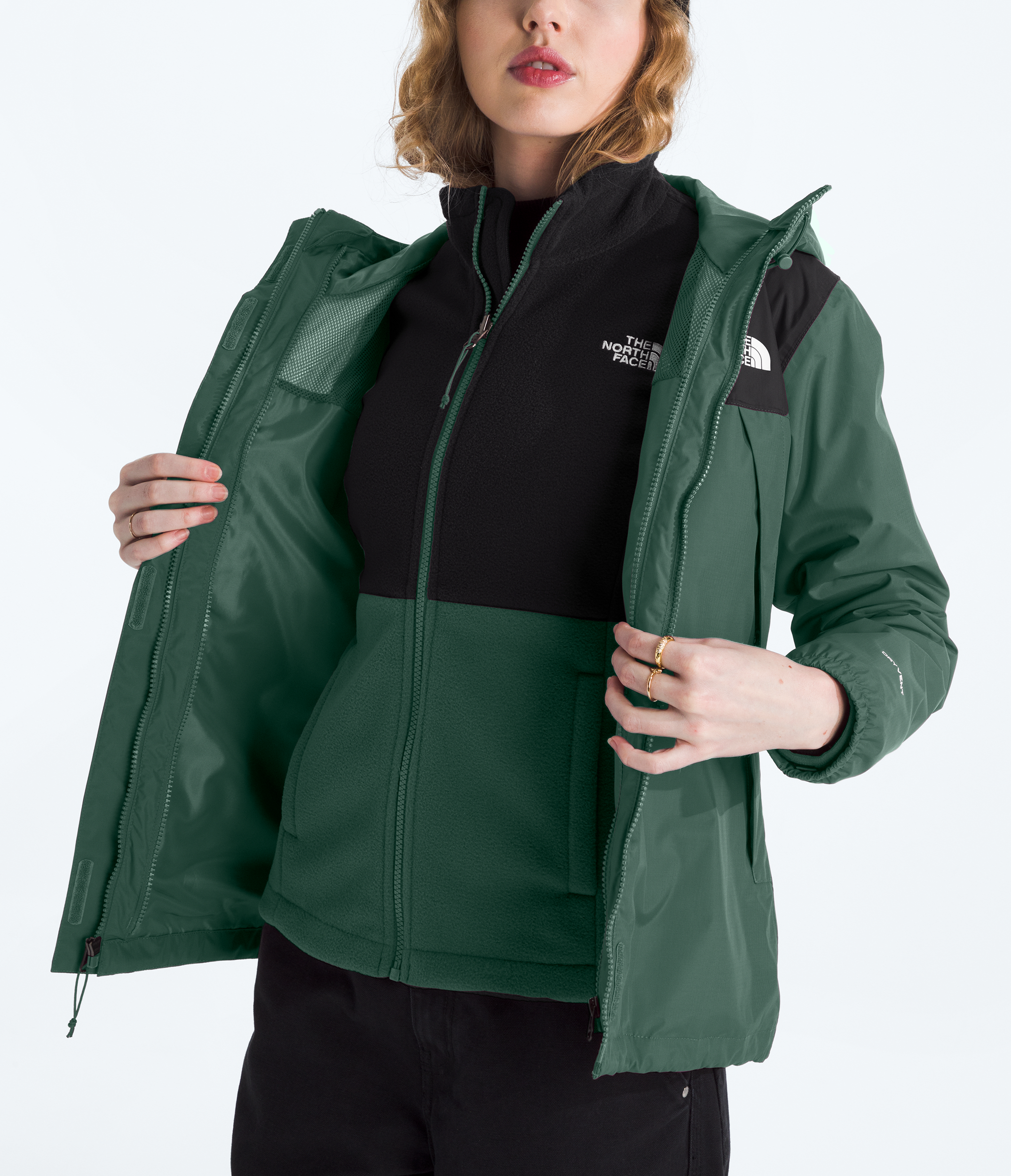 Meet the Women's Antora Triclimate®. We designed it for warmth and protection across a wide range of conditions. The waterproof outer layer is snap-in compatible with a water-repellent fleece liner jacket, giving you three different ways to maintain your comfort and coverage. Wherever you explore__his jacket is up for it.